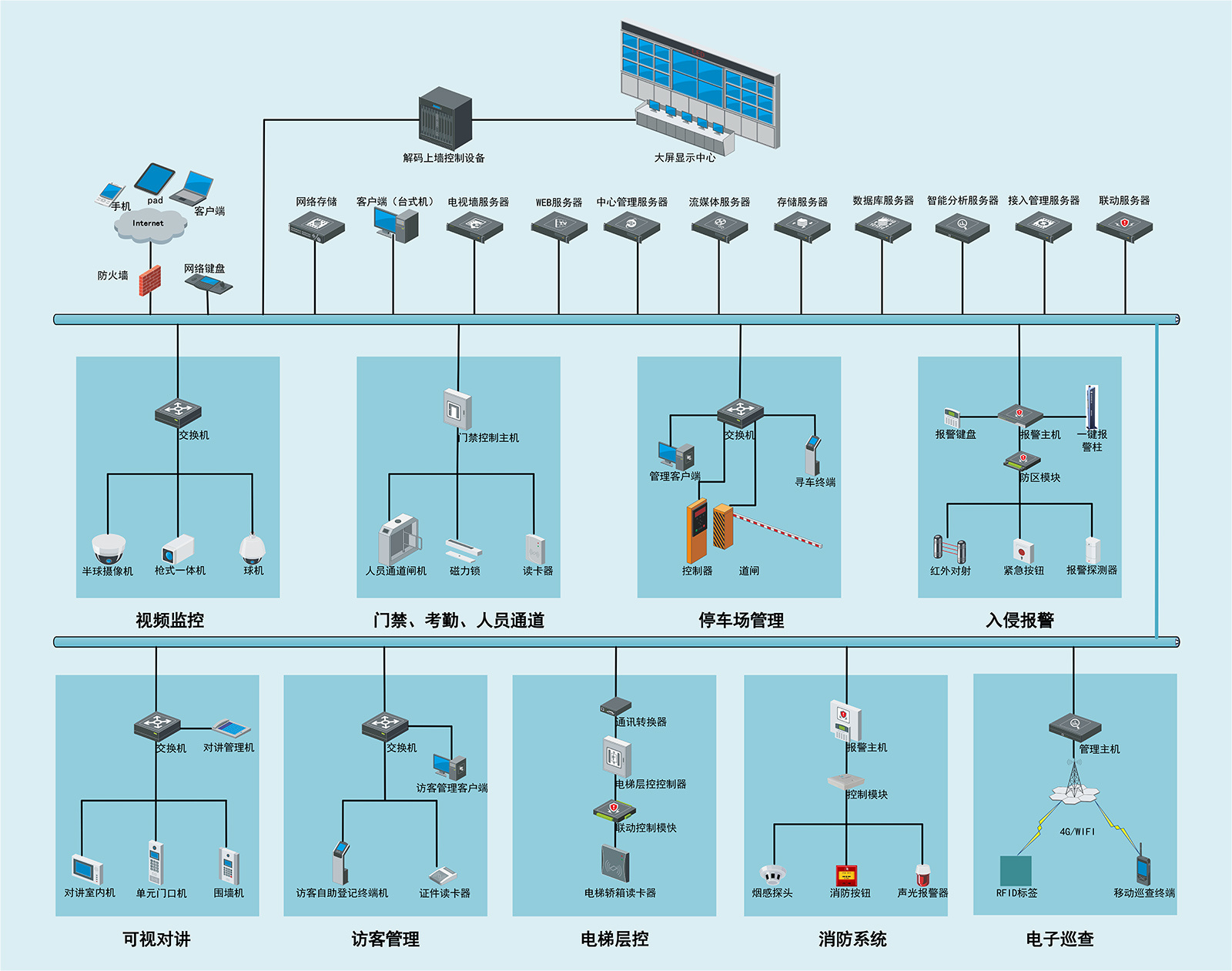 综合安防系统集成架构图如图示: